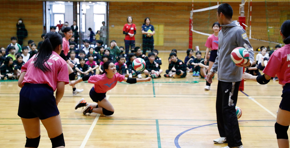 「試合形式ではなく、実際の日々の練習を見ることで、バレーボールの厳しさと楽しさの両方を見れたと思うのでよかった。(デモンストレーション)